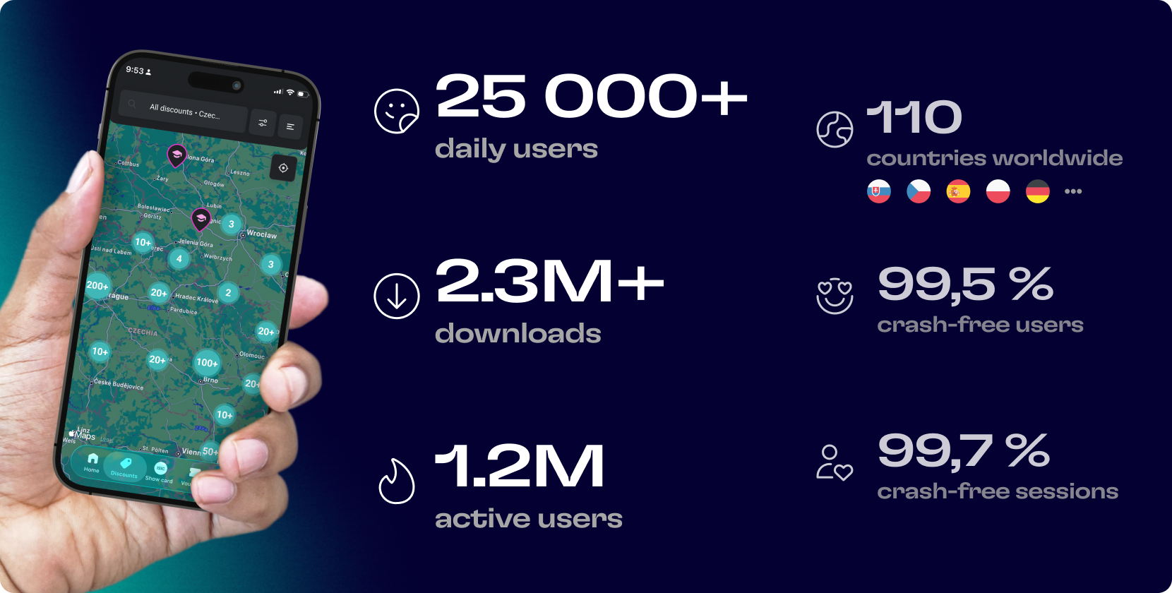 To be specific, ISIC is not a small project for a handful of enthusiasts. It is a robust ecosystem with impressive numbers. More than 25,000 users actively use the app every day across continents, with our strongest user base in Slovakia, Czechia, Spain, Poland, and Germany. Overall, the app has over 2.3 million downloads and 1.2 million active users, making it one of the key touchpoints of the entire ISIC brand, which operates in 110 countries worldwide.